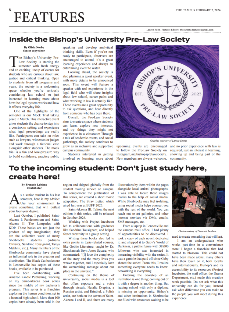 Leighton Geraghty – Contributor Bishop’s University is home to nearly 3000 students. Many share similar interests, but there is not one student like the other. Everyone is completely individual. This week…