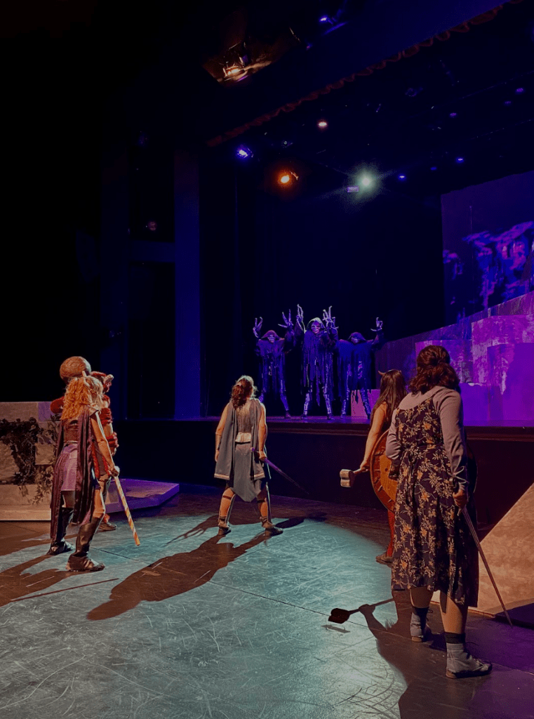Auditions for the show began in November of 2022, with callbacks for actors being held several days after students had returned to campus from the holiday break. Since then, they’ve rehearsed five days a week for six weeks, during which the cast has remained hard at work mastering stage combat techniques and building the stamina demanded by the show. The directors commented on their approach to physical theatre and expressed their belief in “empowerment through movement and being proud of the body you are given.”