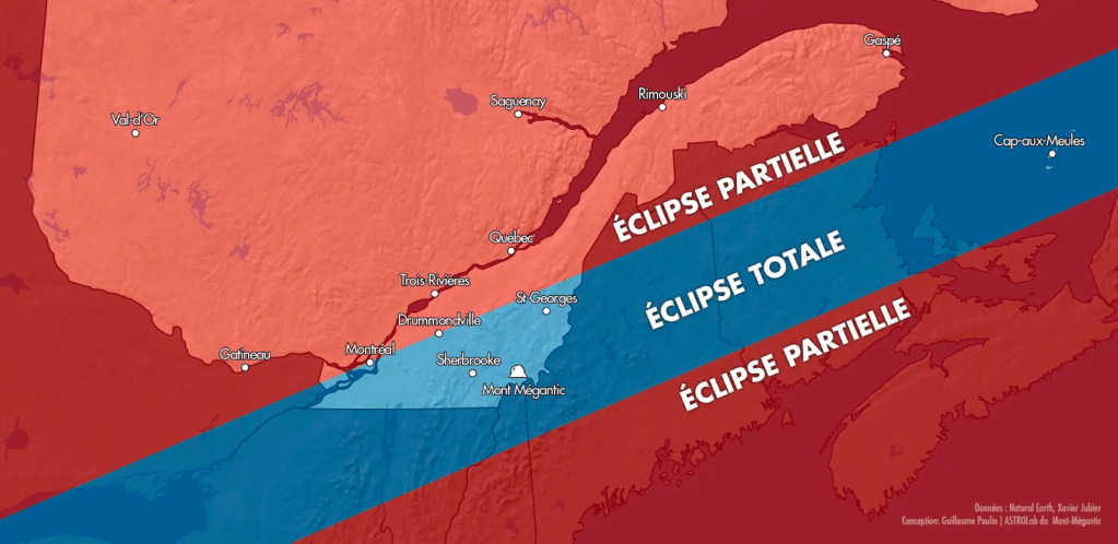 The total solar eclipse will attract eclipse-chasers from across Quebec and around the world to the Eastern Townships, all seeking the best view of totality. “We are expecting up to a million visitors to our region on that day, if the weather is good,” said William Hogg of Destination Sherbrooke, the para-municipal organization that promotes tourism in Sherbrooke.