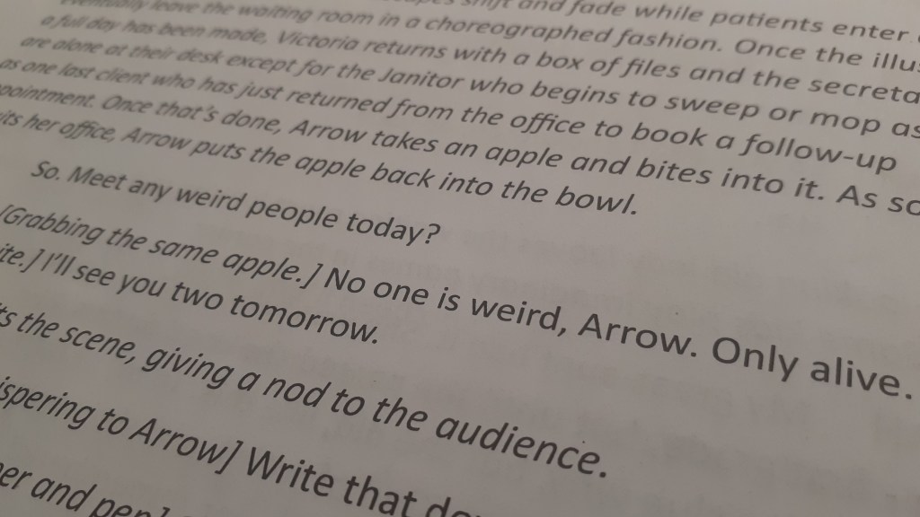 I had written exactly one half of a script prior to writing for the New Plays festival, an idea that emerged from taking the Playwriting II class at Bishop’s. The script was god-awful despite my internal monologue telling me it was in fact the greatest masterpiece known to man that must be talked about to everyone, everywhere and in every conversation I found myself in. “This,” I told myself, back when I was delusional, “will be my magnum opus.” It had a ridiculous fake-Latin title, an overly complicated fantastical plot, and only the protagonist had an actual name.