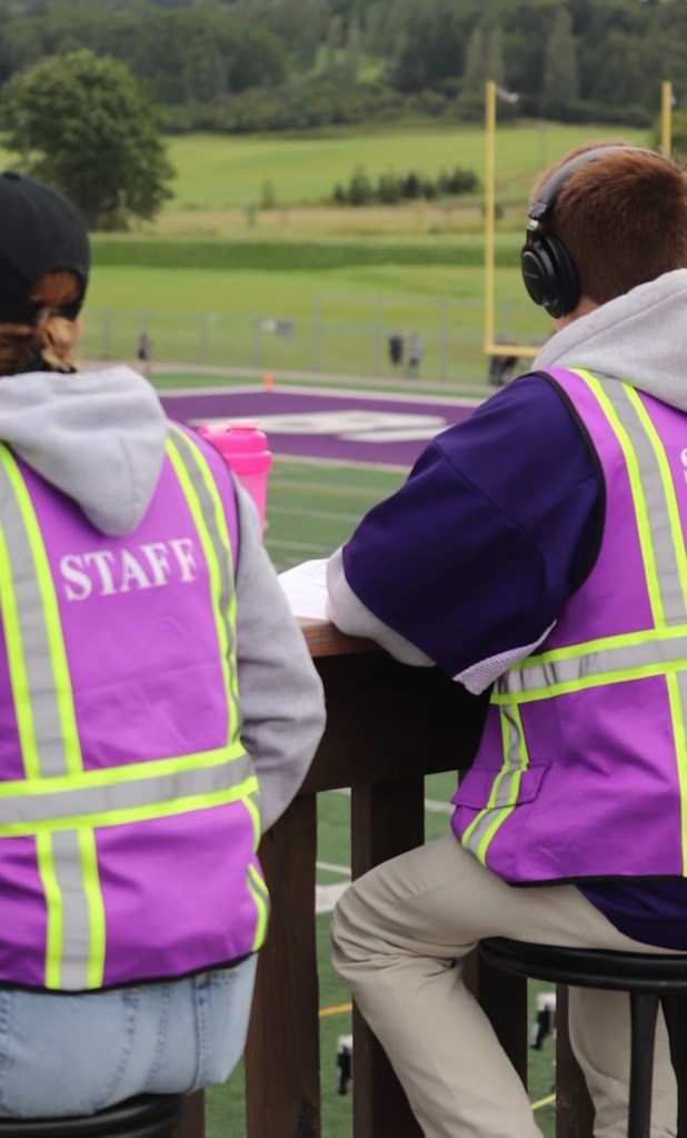 For many sports, Geraghty broadcasts with a partner working as either the play-by-play commentator or colour commentator depending on the sport that they are covering. A play-by-play commentator covers the game while in motion, commenting on what is happening in the game in real time, whereas the colour commentator shines during breaks in the game, sharing personal background stories about the athletes on the field such as “where they are from, how they ended up in the position they are playing and their athletic past in the sport.” Geraghty shared that broadcasting with someone who you share good chemistry with and can bounce off of makes all the difference. “Broadcasting with Zach Graveson for football or the legendary Coach Eddie Pomykala for basketball makes it so much easier because you play off each other and don’t even realize how long you’ve been there for, you’re just having a conversation about the game and having fun while doing it.”