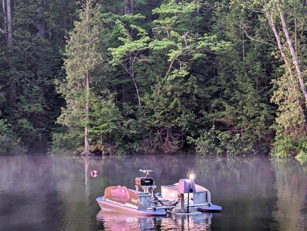 Steven Poulin, who is completing his masters in computer science, prepares his thesis on the Ubergaiter, shown in the image with this article. The Ubergaiter is an autonomous water drone that will automatically map and categorise various underwater plants around different lakes, taking underwater photographs. The drone usually runs at night so pictures have consistent lighting. Lake O’Malley, a small lake near Mount Orford, was the first lake to have its plants photographed and mapped out.