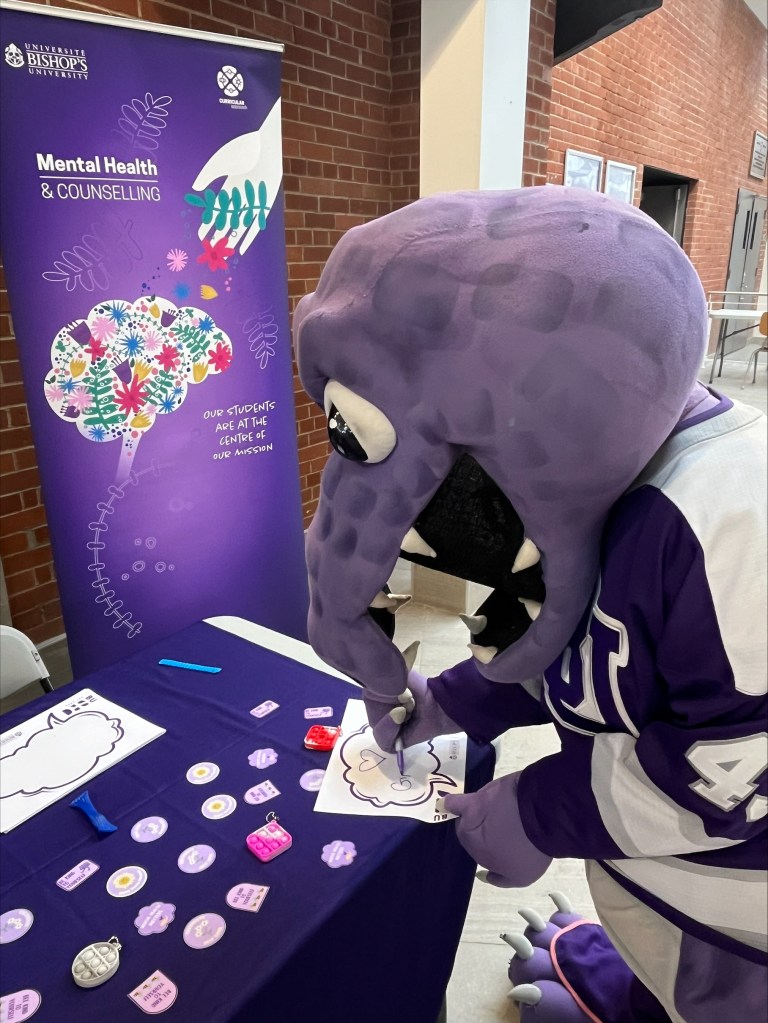 Inspired by Taco Tuesday, Tuesday was designated “Let’s TACO Bout Mental Health” Day. For every taco sold at the Purple Pod, 50 cents were donated towards local mental health resources. Bishop’s students Alexia Côté and Rebecca Benyk organized a panel on men’s mental health. Panellists included Prof. Rafael Tedesqui and Prof. Tavis Smith from the sports studies department; Prof. Daniel Miller from the religion, society and culture department; and students Antoine Tremblay and Drew Henkel. They discussed toxic masculinity, mental health accessibility and mental health stigma present in sports and academia. One key takeaway was that physical, emotional and mental health coexist and should receive the same level of care. The day concluded with a Mental Health Trivia Night at the Gait.