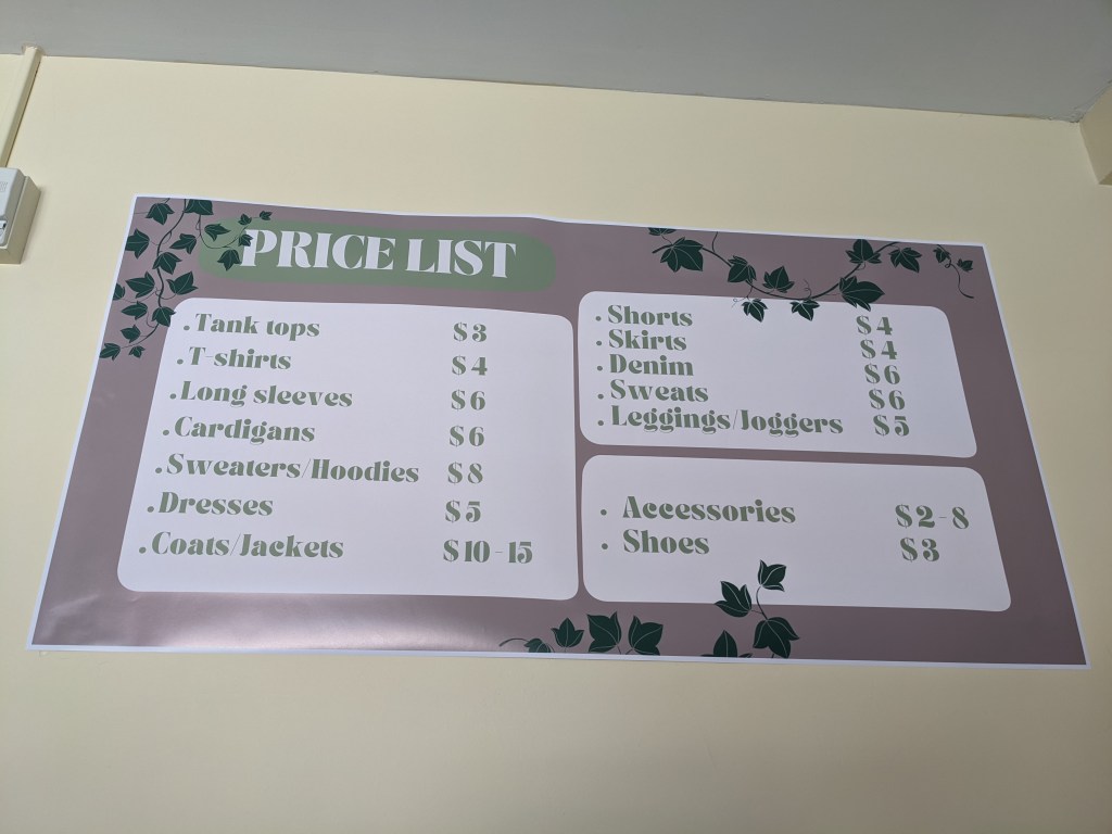 The thrift store offers an alternative shopping experience. Students can find a diverse array of clothing items – including tops, bottoms, dresses, coats and shoes – at a fraction of the cost of buying new pieces. By purchasing second-hand clothing, students not only save money but also reduce their carbon footprint by extending the life cycle of garments that might otherwise end up in landfills.