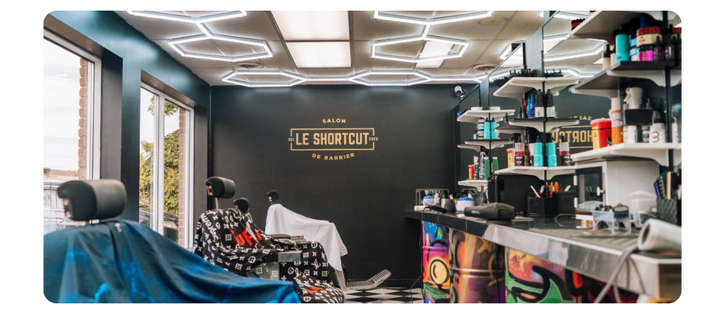Daoudi owns Le Shortcut Barbershop, a small but busy shop right in the heart of Lennoxville. Black walls, a few neon lights, bumping music and a PlayStation in the waiting area give the shop a modern, street-culture energy that feels more like a hangout than an errand.