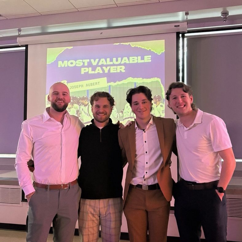 The banquet also featured a series of awards recognizing individual contributions. Jo Aubert was named team MVP, capping off a standout career with the program. Beyond his performance on the ice, Aubert’s impact on the program has been defined by the countless hours he has invested in helping build and improve the team, demonstrating a level of commitment that has elevated the program. Additional awards included Hardest Worker (Tristan Côté), Most Improved Player (Sam Marchand), Defensive Player of the Year (Nathan Gagnon) and Rookie of the Year (Leandre Jodoin). The team also took time to recognize its graduating seniors: captain Jo Aubert, goaltender Jack Macfarland, defenceman Jack McGowan, and forward Marc Lagacé. Their departures mark the end of an important chapter, but also highlight the strong foundation they have set for the future.